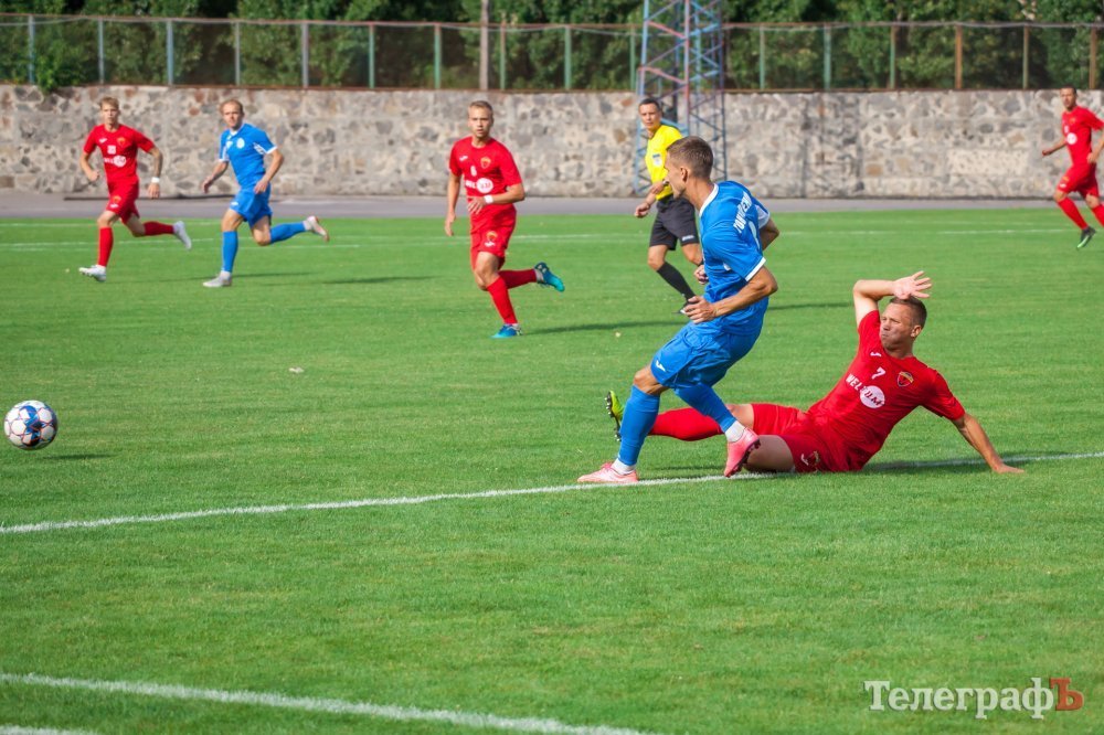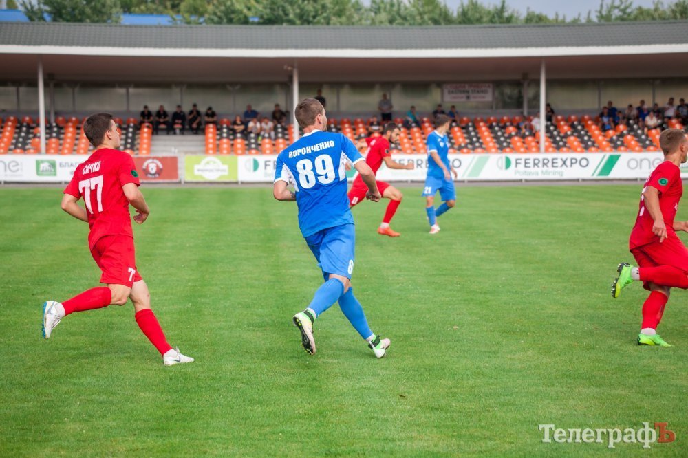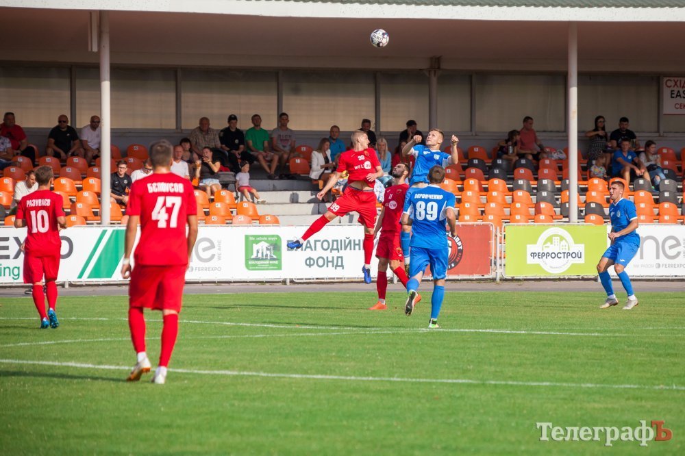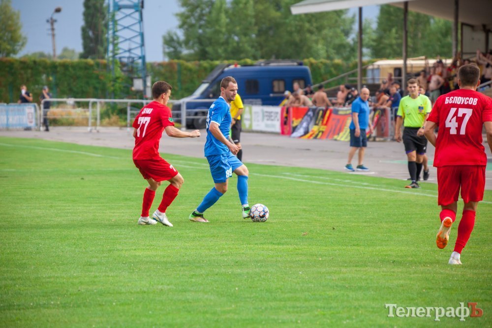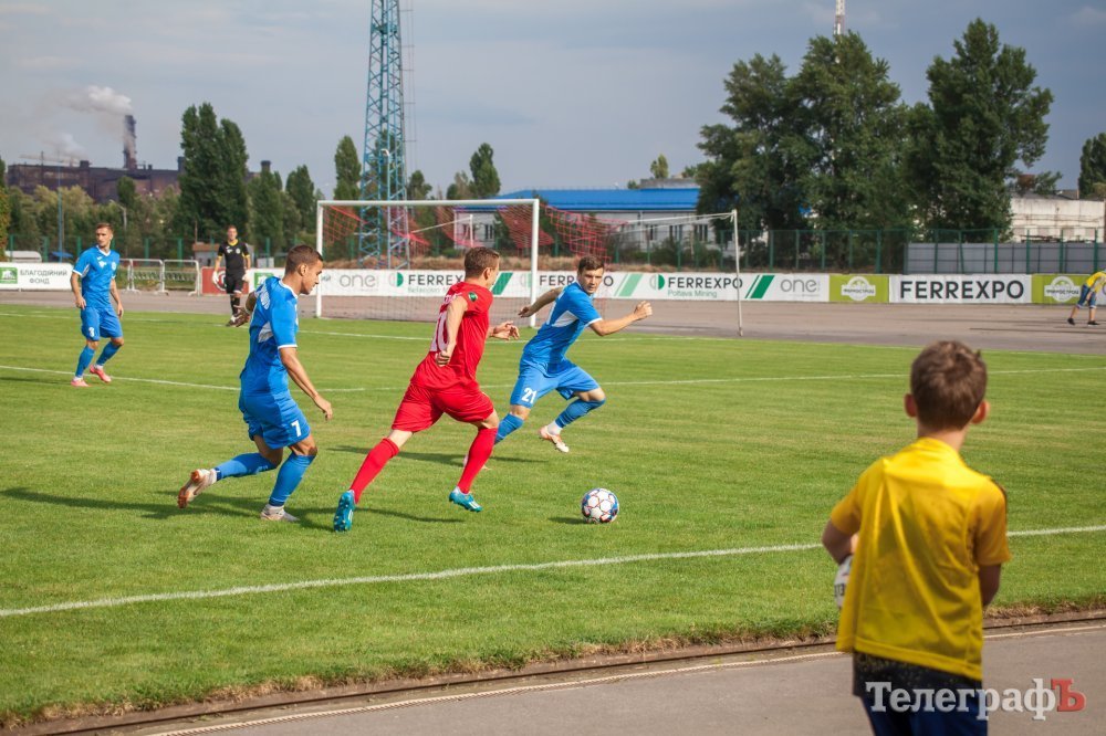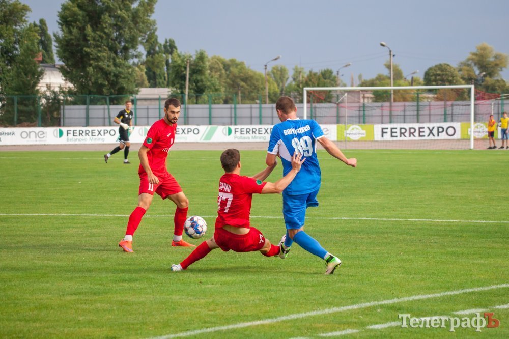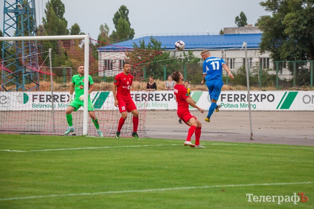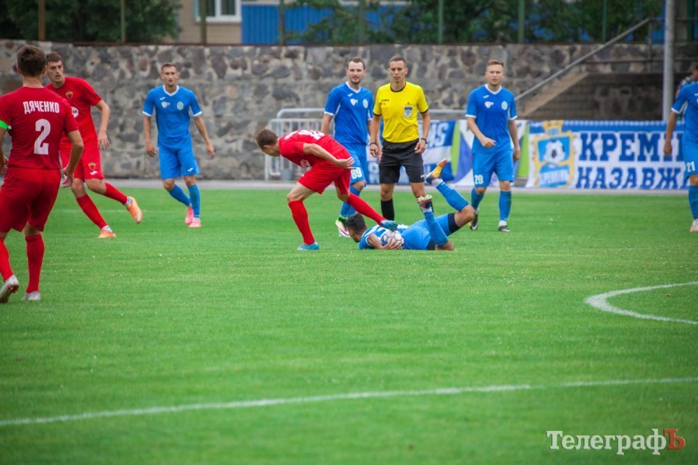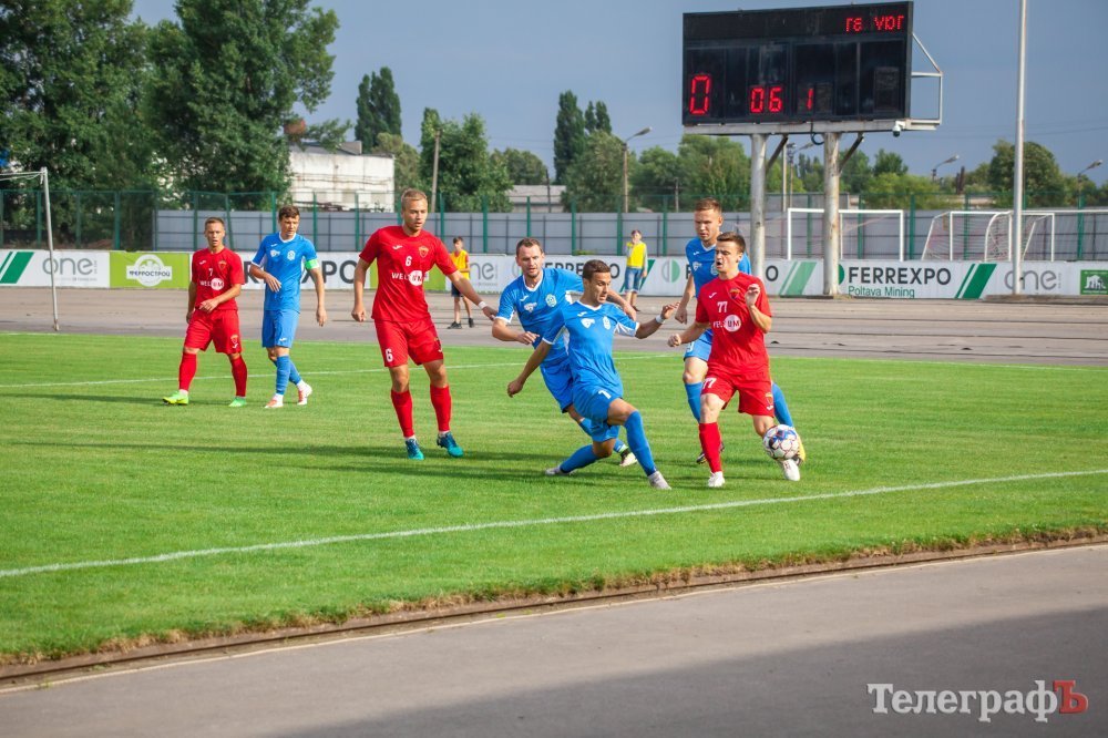 Перший тайм проходив на половині поля «Металурга». Кременчужани взяли в облогу ворота Левченка. Один за одним стандарти у кременчужан не йшли, то не вистачало останнього дотику для гольового удару, то м’яч пролітав повз ворота. У середині першого тайму Євгена Мурашова в неоднозначному моменті збивають у штрафному майданчику, але арбітр не вказав на одинадцятиметровий. Після цього гості змогли завдати першого серйозного удару в створ воріт Ореста Будюка, коли Щебетун пробив зі штрафної лінії.