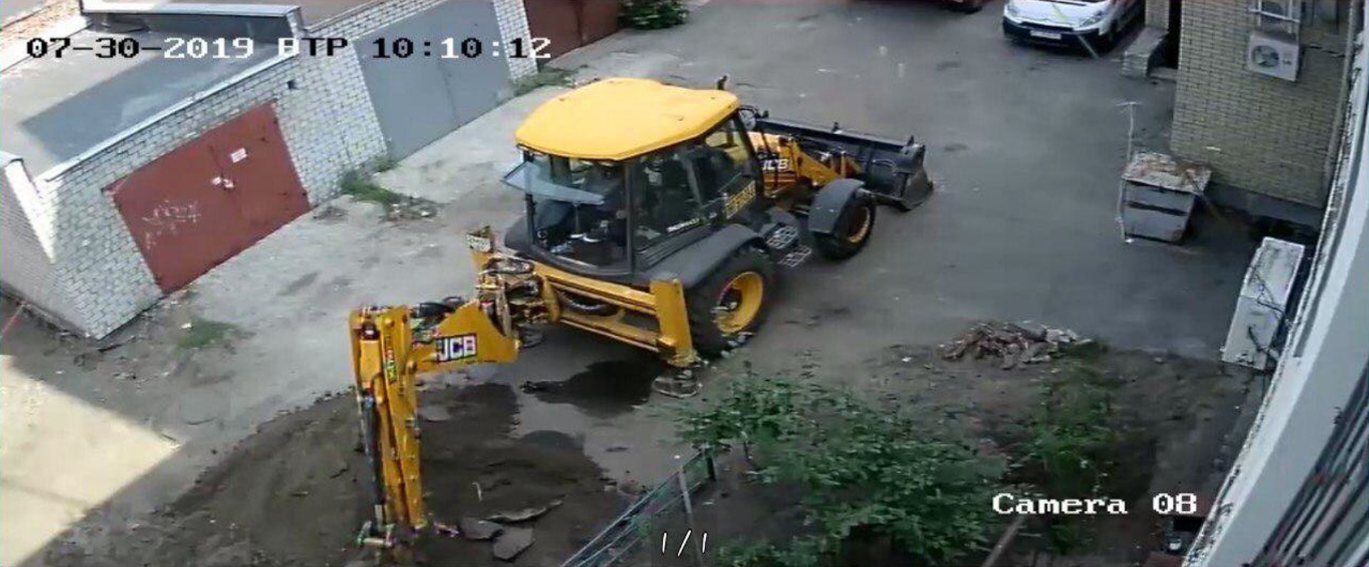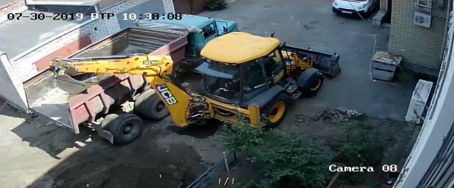 29 липня почалися земельні роботи з використанням важкої техніки: ділянку, яку забудовники «розчистили», забетонували та засипали щебенем, згодом там мають укласти плитку. Фото з камер відеоспостереження надали власники магазину «Пітер Пен».