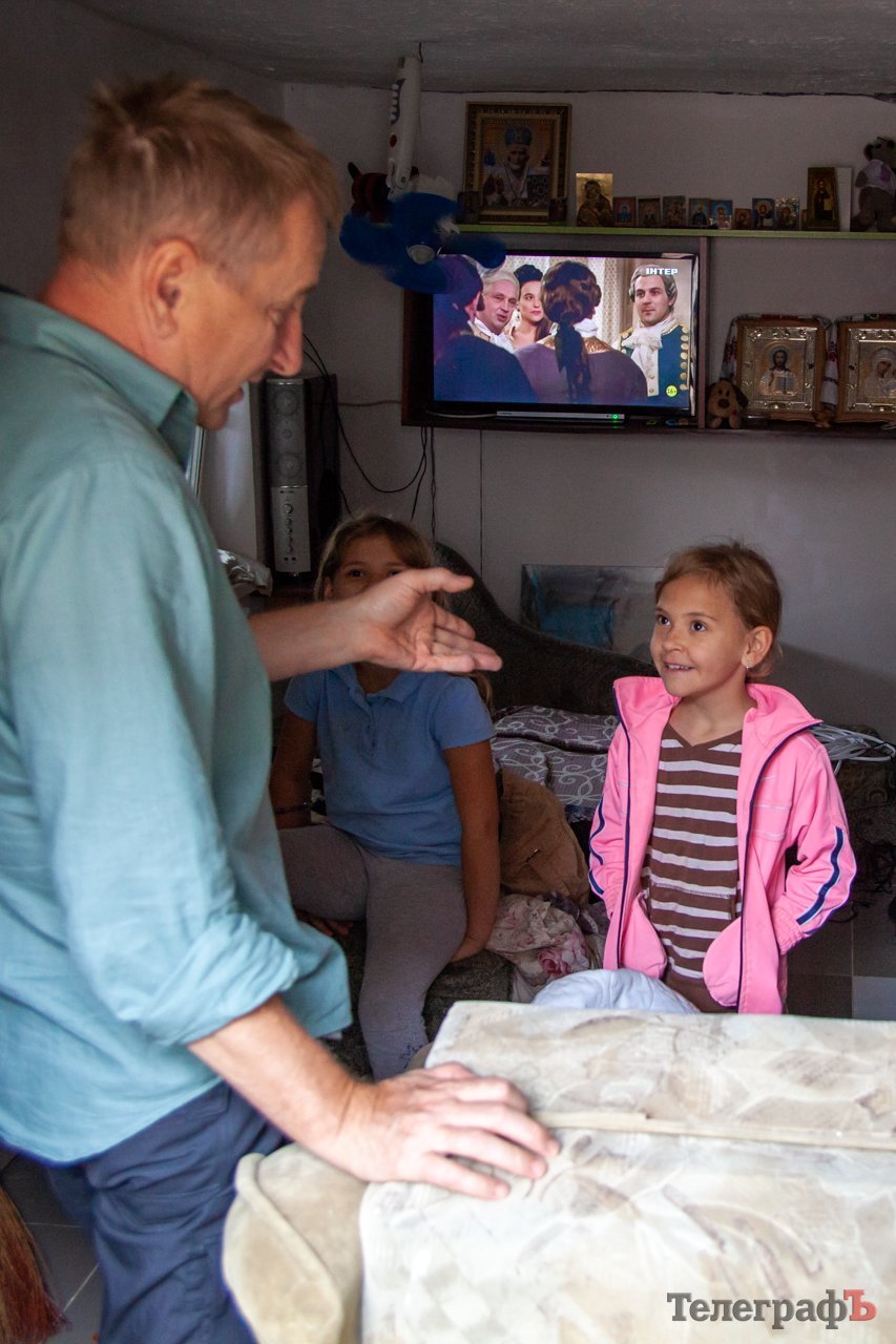 Два тижні назад «Телеграф» завітав у гості до кременчуцького бійця Василя Онищенка. Василь Онищенко разом з донечками показали в яких умовах живуть всією родиною. На 19 квадратних метрах родина вміщує два дивани, столик для занять, меблі та грубку, яка зігріває взимку. Через холодну підлогу в будинок просочилася волога, яка знищила меблі. Василь в першу чергу утеплив підлогу, виклав плитку та зробив стіни. За кілька тижнів «Телеграф» знову завітав до бійця та його дружньої родини подивитися як йдуть справи.