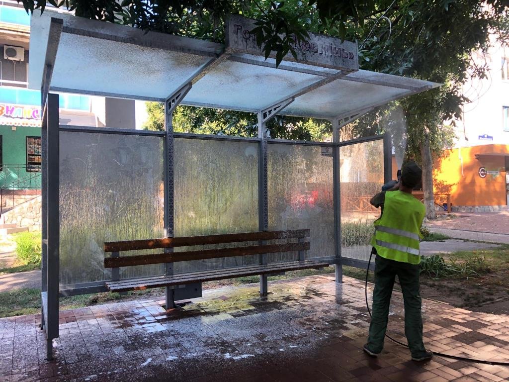 Миття зупинок комунальники проводять щодня за допомогою спеціальної техніки, а оскільки їх багато, то кожну зупинку миють приблизно раз на місяць.