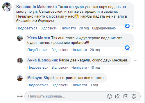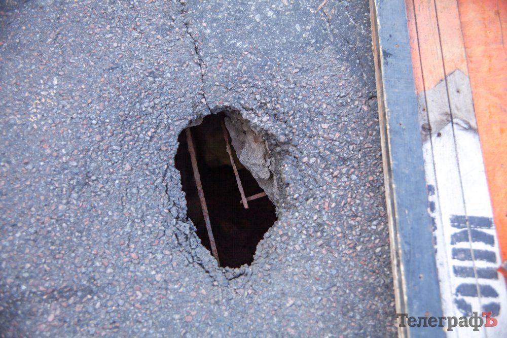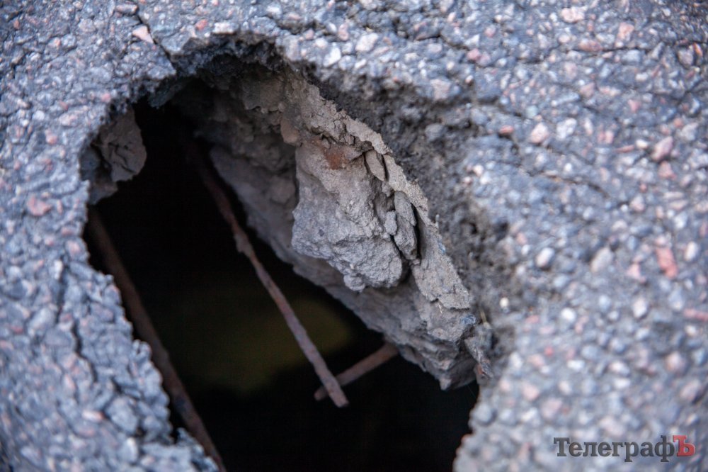 Річ у тім, що в асфальтному покритті шляхопроводу утворилася дірка. У коментарях на фейсбук-сторінці «Т» деякі кременчужани розповідають, що дірка «народилася» кілька тижнів тому, інші кажуть, що кілька місяців тому.