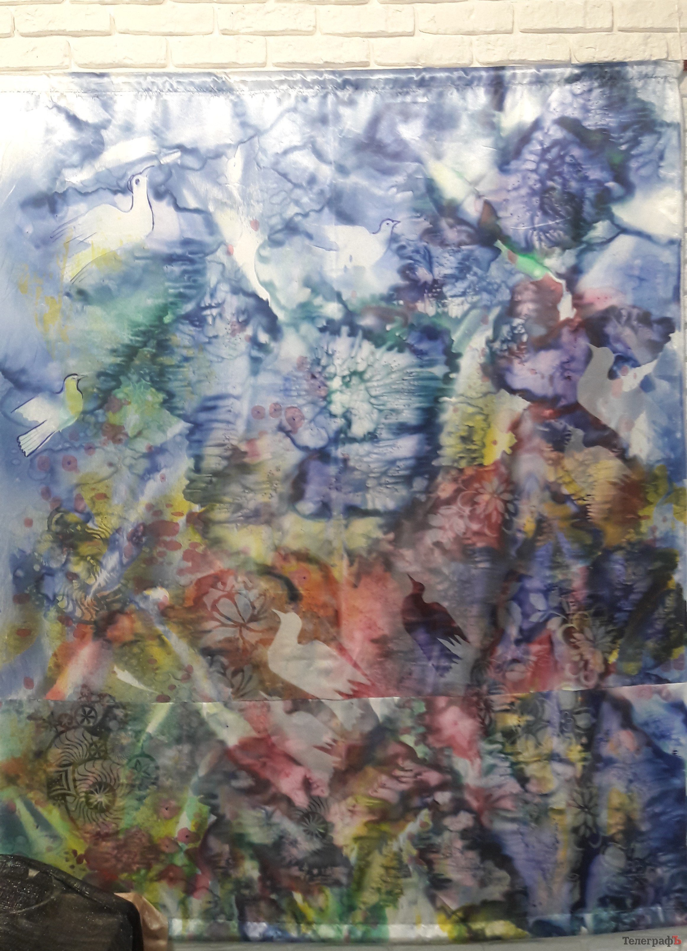 – Росписью по шёлку я стала заниматься ещё в художественной школе. Во-первых, это очень удобно при пересечении границы. Если вы везёте картины, могут возникнуть большие проблемы. А если ты написал батик на шёлке, просто его сложил – можно провезти. Чтобы переправить картины через границу, нужно оформлять бумаги, которые должны иметь международные значения. Пытались мы так с группой немцев однажды, но тогдашняя украинская таможня не захотела признать эти международные документы. Поэтому теперь я вожу просто работы на бумаге, которые можно запросто положить в чемоданчик, или же расписываю шёлк.