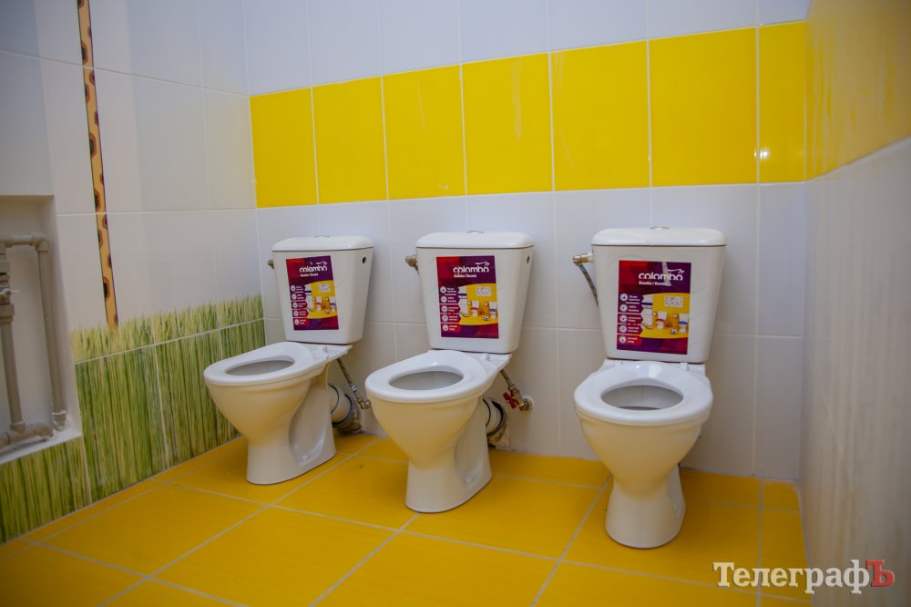 Окрема гордість будівельників — яскраво оздоблені кімнати гігієни з дитячими унітазами, рукомийниками для зручності малюків.