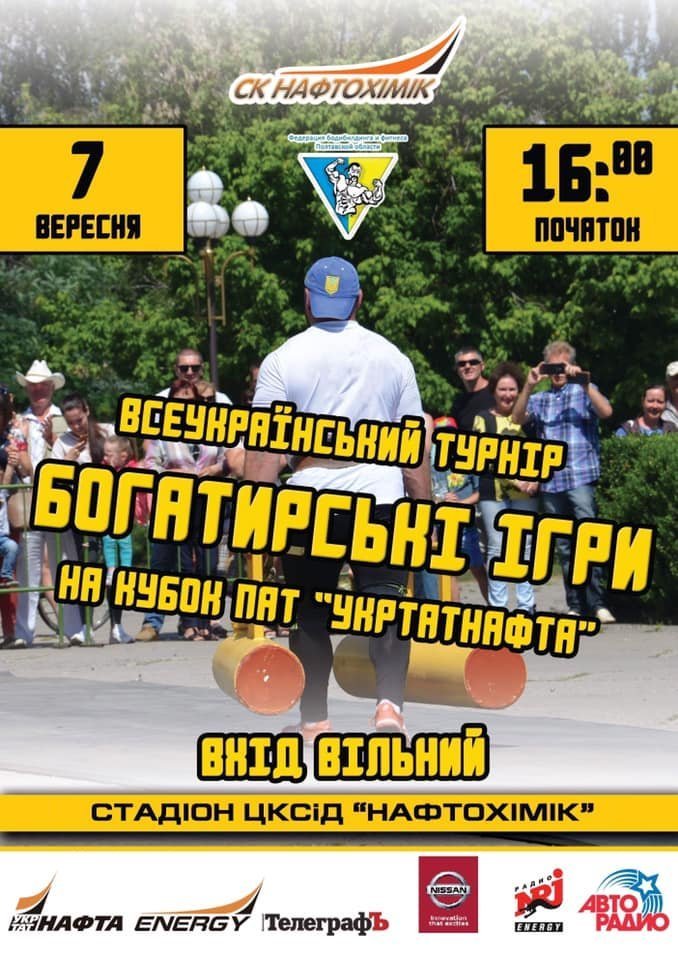 7 вересня на стадіоні «Нафтохімік» відбудуться «Богатирські ігри». До Кременчука з’їдуться найсильніші богатирі на Всеукраїнський турнір «Богатирські ігри» на Кубок ПАТ «Укртатнафта».