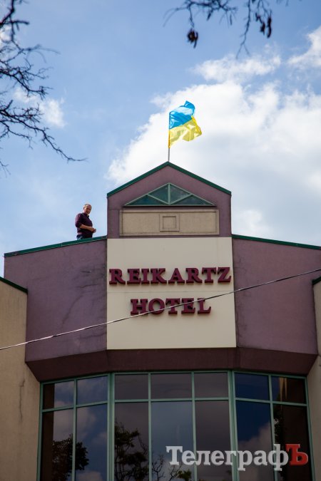 А ось такі символи української держави, які помітно здалеку, потрапили в об'єктів «Телеграфа» на одному з будинків по вулиці Івана Мазепи. Поряд з жовто-блакитним прапором, який символізує державність і соборність України, містяни розмістили червоно-чорний стяг Національної гідності, який використовувала УПА під час визвольної боротьби за відновлення української державності у ХХ столітті.