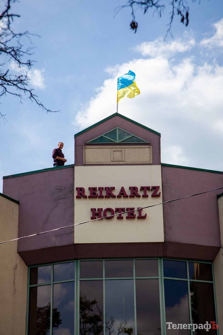 А ось такі символи української держави, які помітно здалеку, потрапили в об’єктів «Телеграфа» на одному з будинків по вулиці Івана Мазепи. Поряд з жовто-блакитним прапором, який символізує державність і соборність України, містяни розмістили червоно-чорний стяг Національної гідності, який використовувала УПА під час визвольної боротьби за відновлення української державності у ХХ столітті.