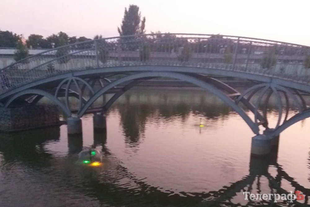 Озеро в Городском саду Кременчуга украсили фонтанами для аэрации воды. Их можно увидеть по обе стороны от моста, ведущего на остров с альтанкой. У основания фонтанов размещены цветные лампы, которые «раскрашивают» выходящую из фонтанов воду.