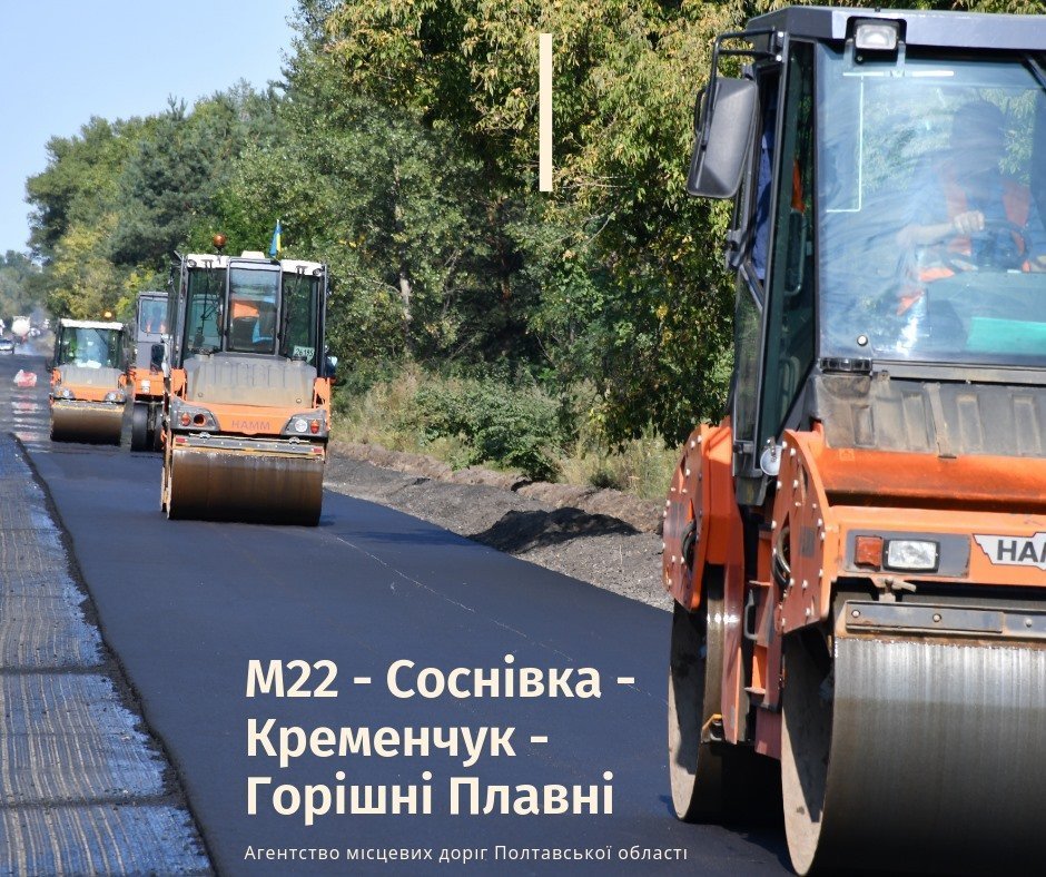 На трасі М-22 Соснівка–Кременчук–Горішні Плавні з’явиться нове асфальтне покриття. Про це повідомили на сторінці у Фейсбуці Агентства місцевих доріг Полтавської області. На ремонт 15 км дороги провели тендер та виділили 33 млн грн.