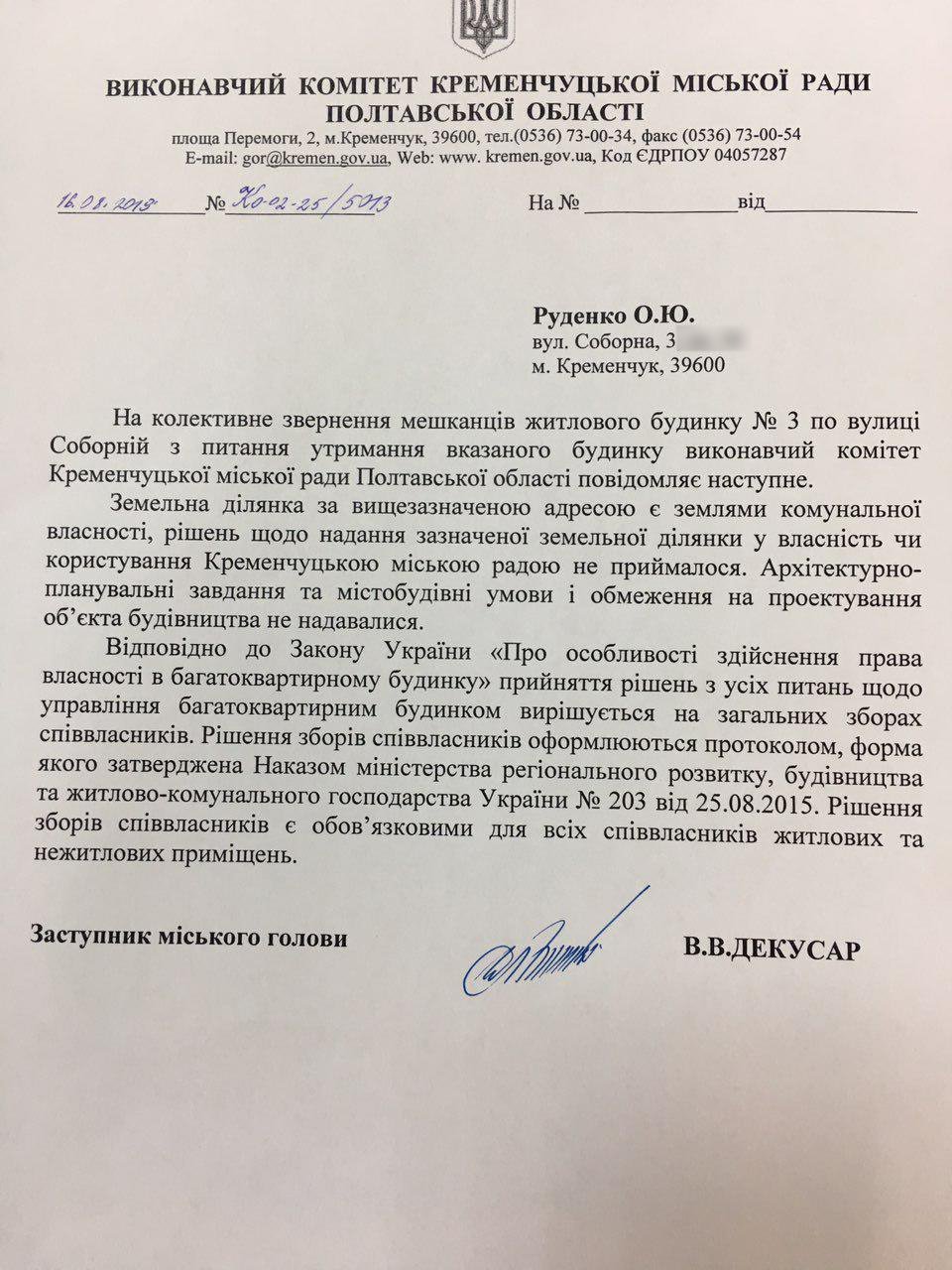 Проте за пропозицію Піддубної про знесення забудови члени комісії так і не проголосували, натомість було доручено Управлінню контролю за станом благоустрою Кременчука промоніторити ситуацію, що склалася. Якщо потрібно — звернутися до поліції, аби з’ясувати, чия важка техніка працювала під час бетонування ділянки двору.