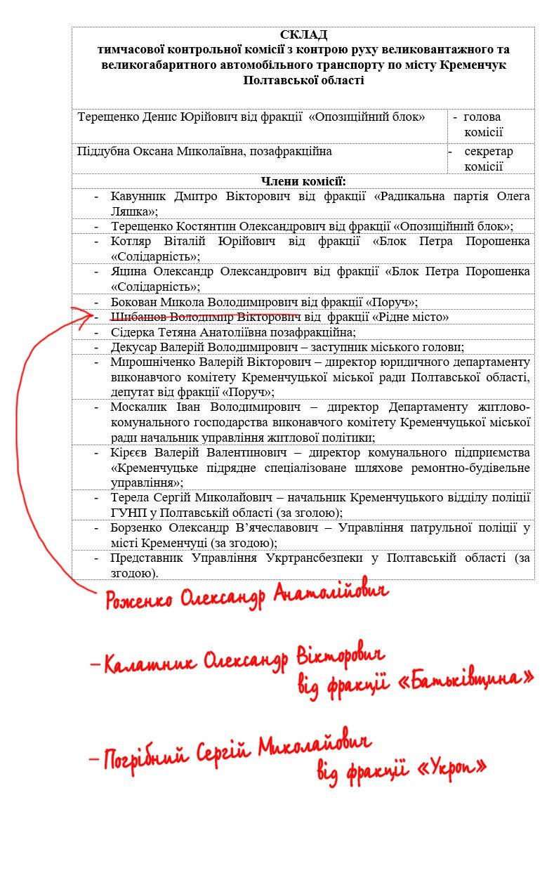 Під час розгляду проєкту рішення [attachment=633] депутати внесли деякі зміни у складу комісії. Володимира Шибашова замінили Олександром Роженком. Також до складу додали двох депутатів: Сергія Погрібного (фракція «Укроп») та Олександра Калашника (фракція «Батьківщина»).