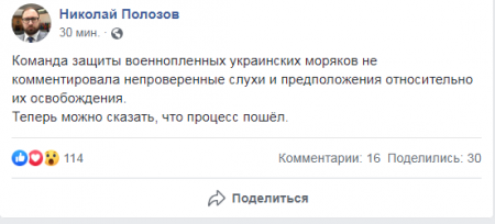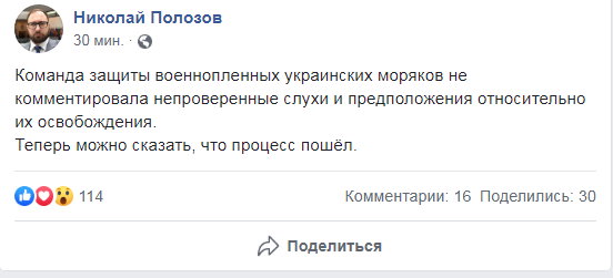 Тим часом адвокат військовополонених українських моряків Микола Полозов так прокоментував події у Фейсбуці: