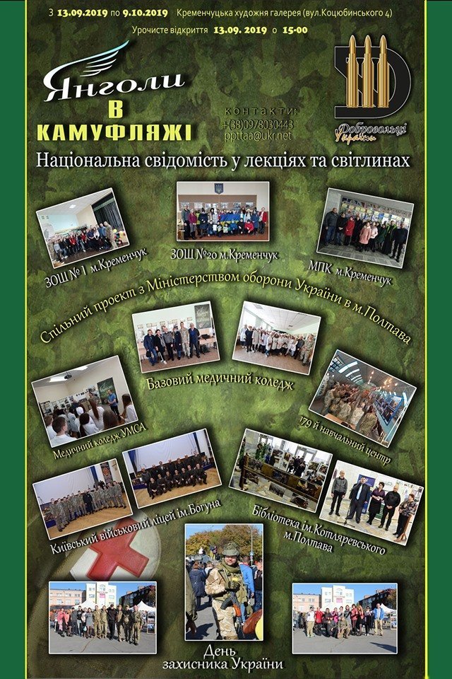 Фотовиставку «Янголи в Камуфляжі» відкриють 13 вересня о 15.00 у Кременчуцькій художній галлереї (вул. Коцюбинського, 4).