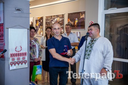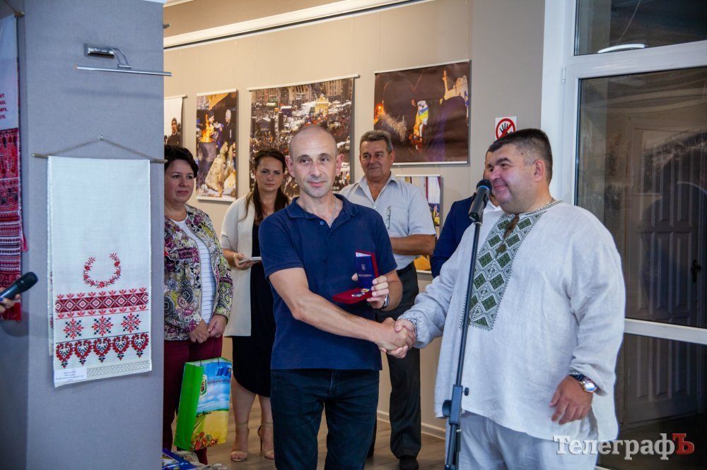 На відкриття виставки «Янголи в камуфляжі» завітали представники Полтавської обласної адміністрації Руслан Роговий та Вікторія Пилипенко. За дорученням голови обласної ради, організатору виставки Юрію Крамаренку, який добровільно взяв участь в АТО, вручили відзнаку «За вірність народу України».