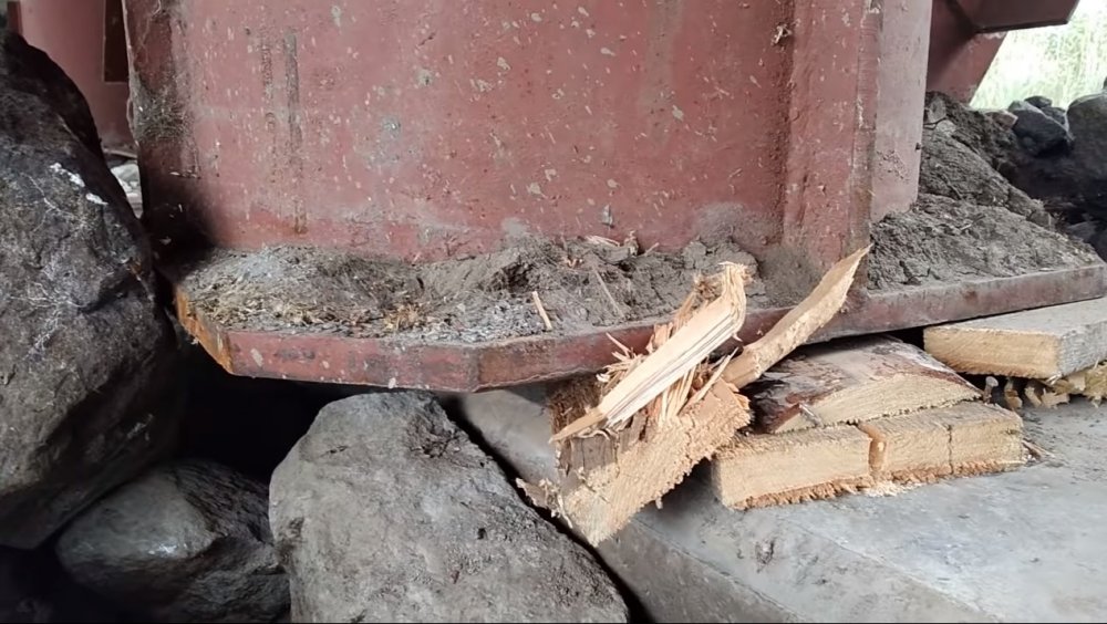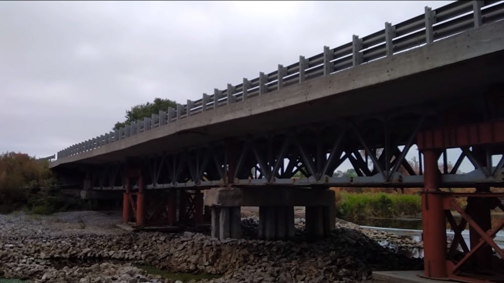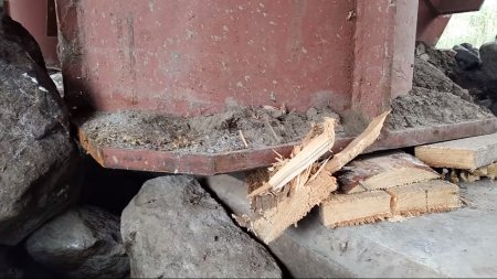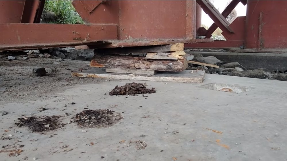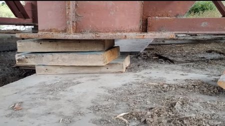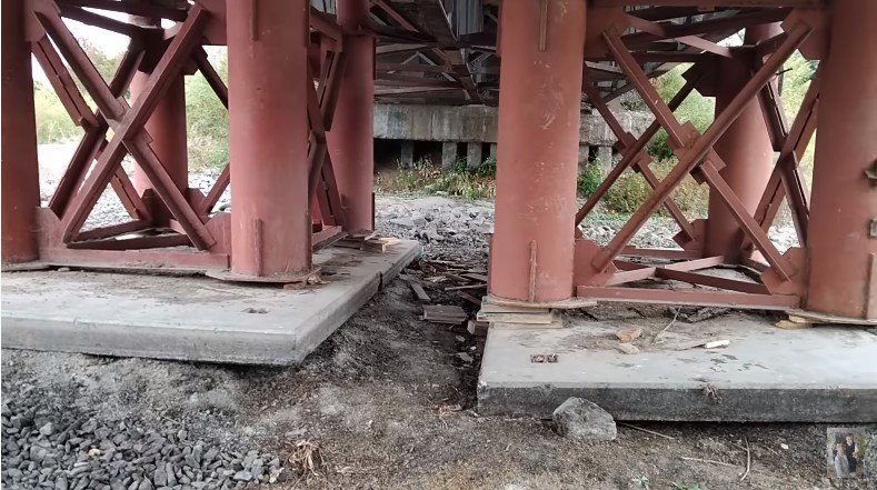 Під деякими металевими опорами мосту є дерев'яні дошки. Крім того, цементні основи, на яких тримаються опори, нещільно прилягають до землі