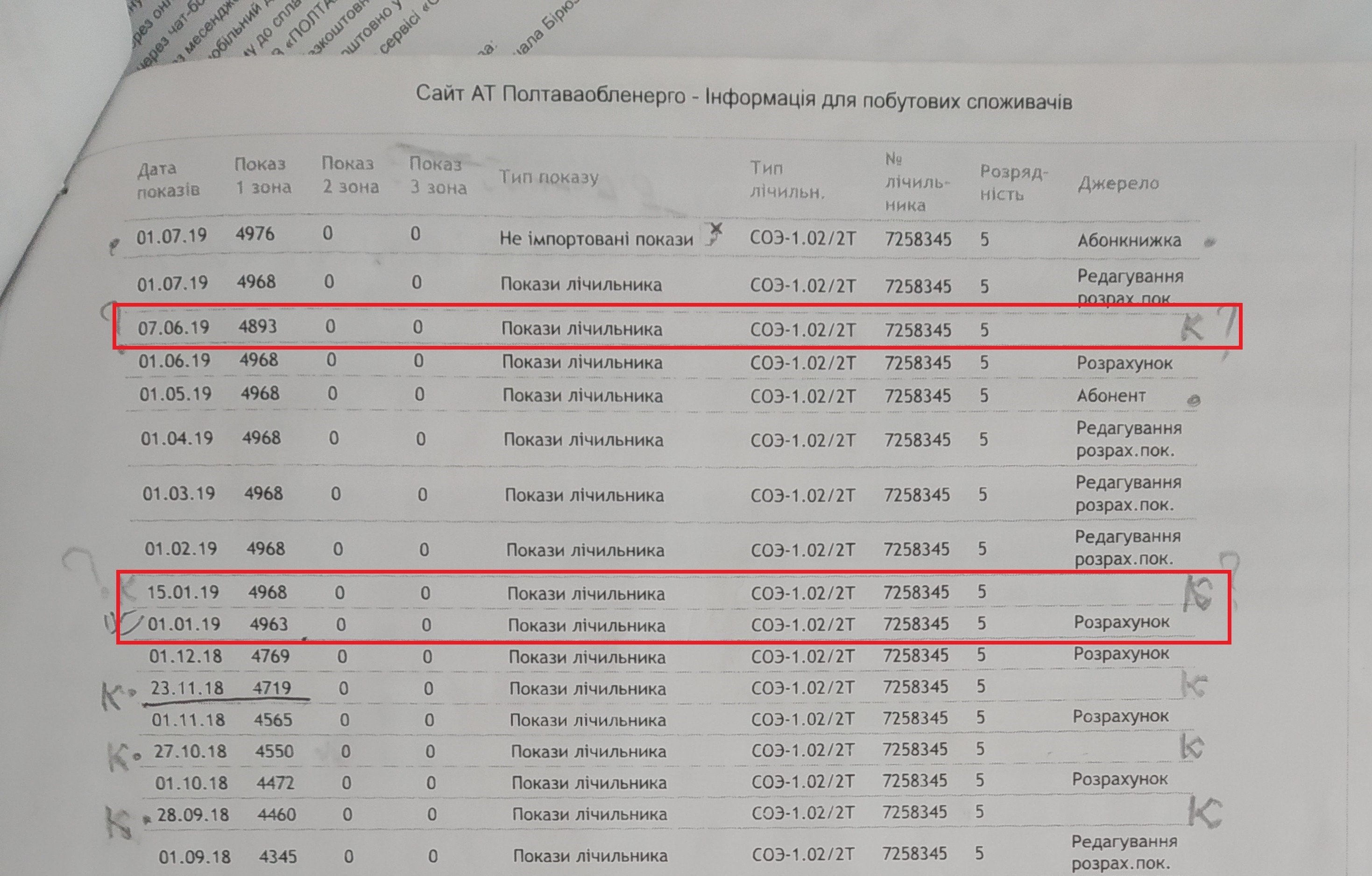 Це тривало, поки до Віктора не потрапило попередження і він запросив контролера, який 7 червня зафіксував покази «4893». У той час станом на 1.01.2019 значення було більшим – «4968».