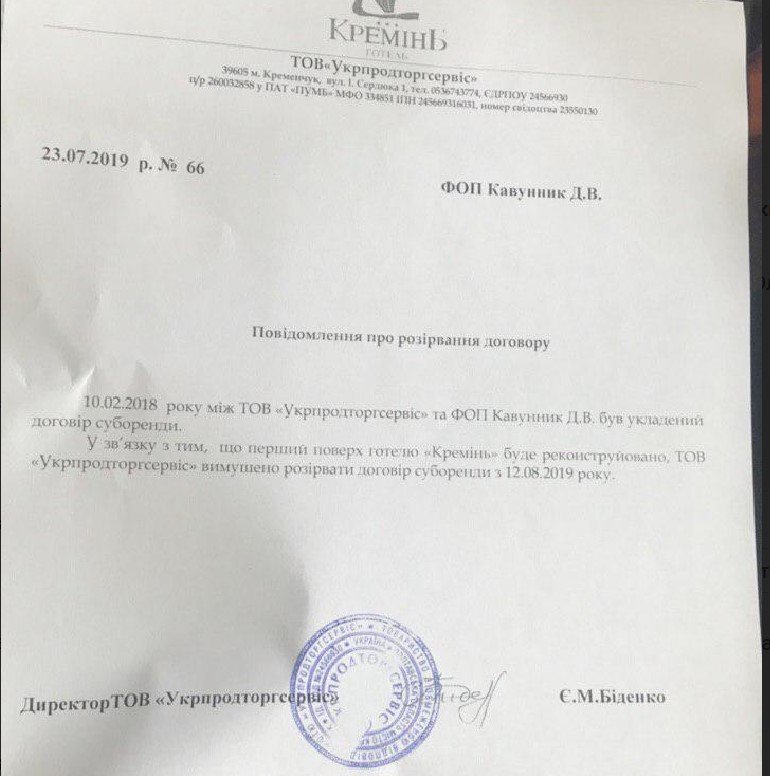 После парламентских выборов приёмная кременчугской парторганизации Радикальной партии Ляшко в гостинице «Кремень» закрылась. Администрация гостиницы разорвала договор аренды. Официальный мотив – предстоящая реконструкция первого этажа.