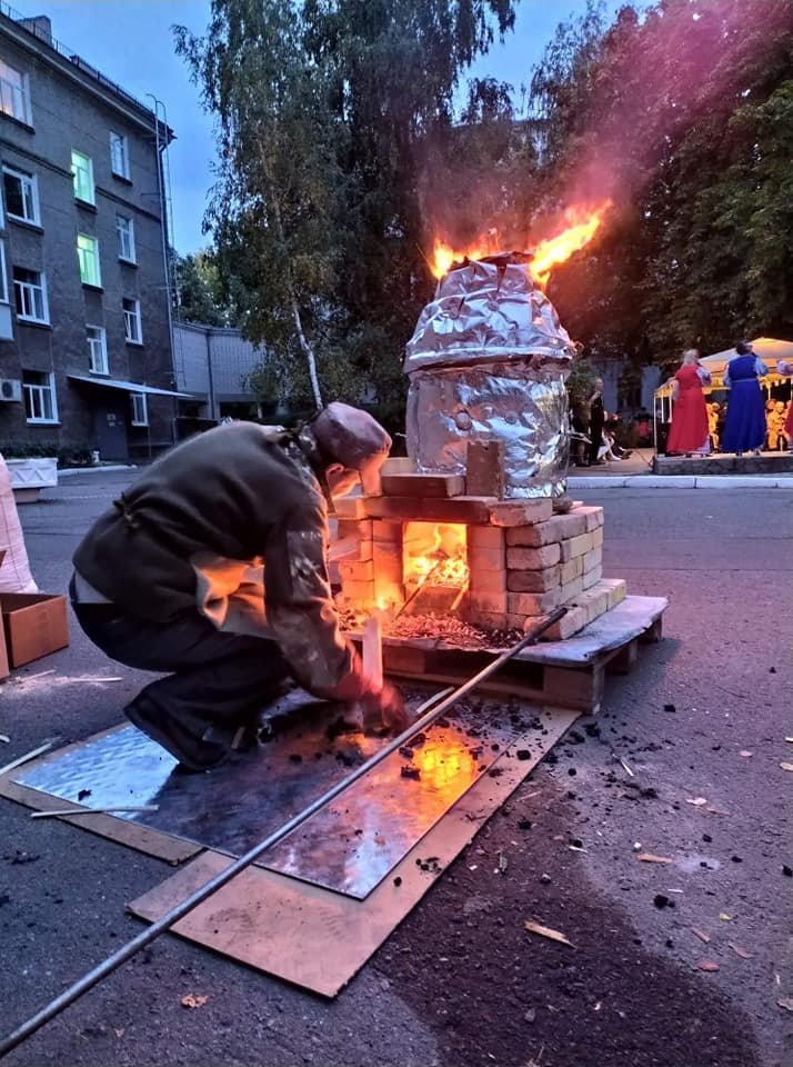 Першу у Кременчуці вогняну скульптуру створили на території Кременчуцького госпіталя. Соцпрацівник відділення з реабілітації учасників бойових дій госпіталя Інна Пугач виклала інформацію та відео створення вогняної скульптури на сторінці АТО Кременчуцький госпіталь. Його можна переглянути за посиланням.