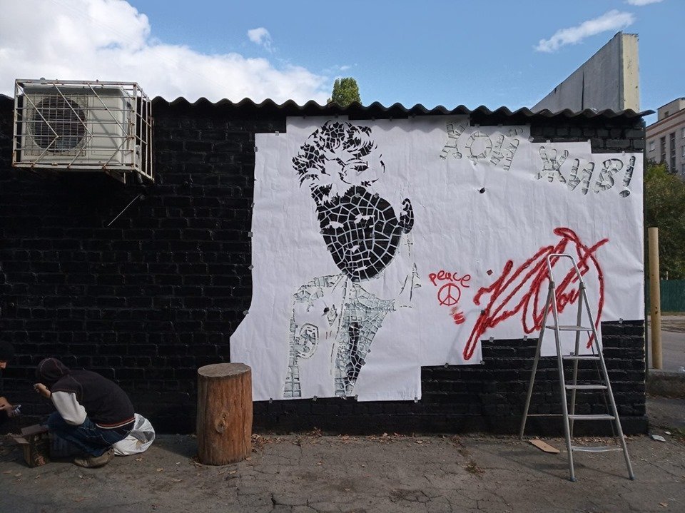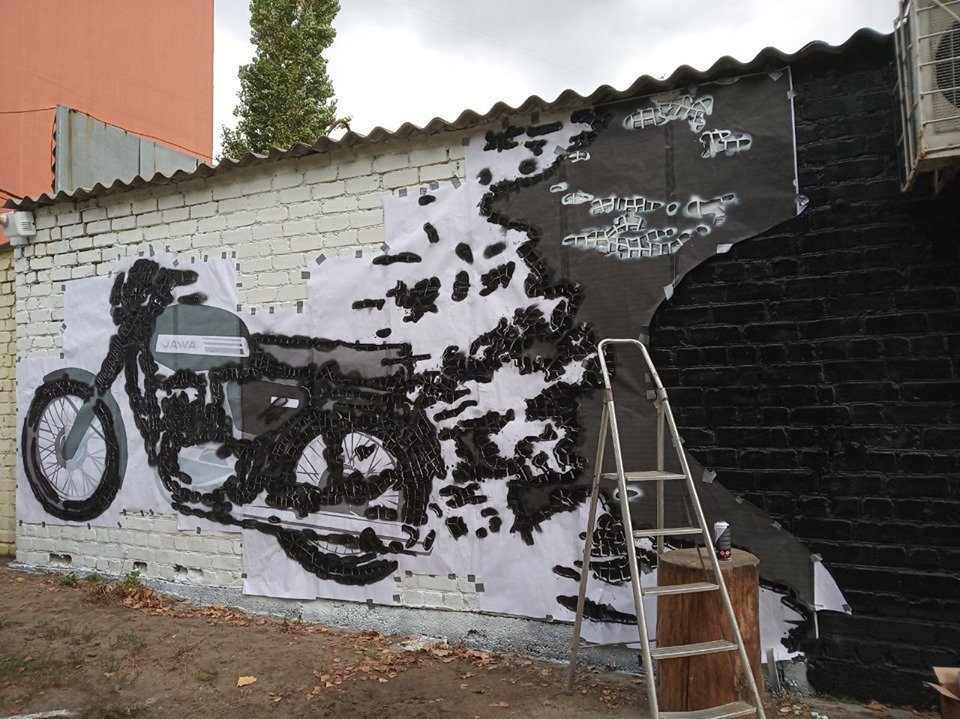 В батлі з погодою, коли вітер здував трафарети, митцям довелося їх розділити на частини. Роботу художник з друзями швидко завершив і тепер вона радує мешканців мікрорайону.