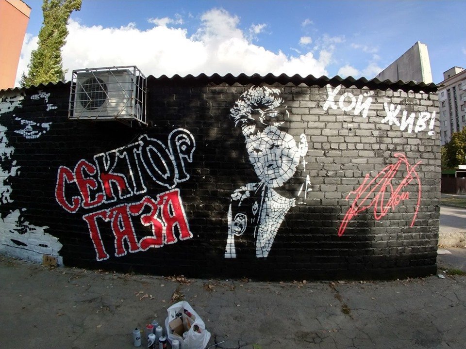 Минулими вихідними кременчуцький художник Сергій Брильов разом з друзями на Першому Занасипу створили графіті із зображенням лідера рок-гурт «Сектор Газа» Юрія Клинських, більш відомого під псевдоніом Хой.