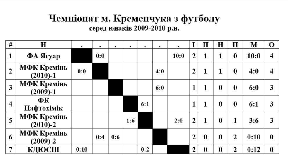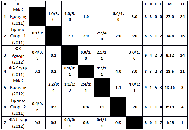 Результати чемпіонату Кременчука з футболу серед юнаків 2011-2012 років народження: