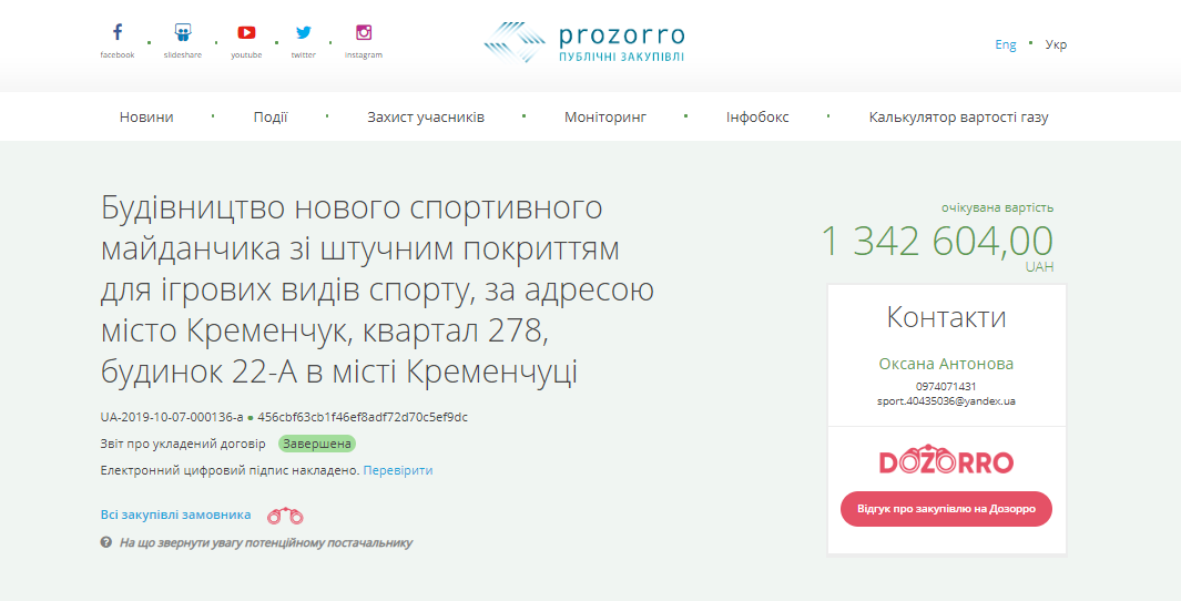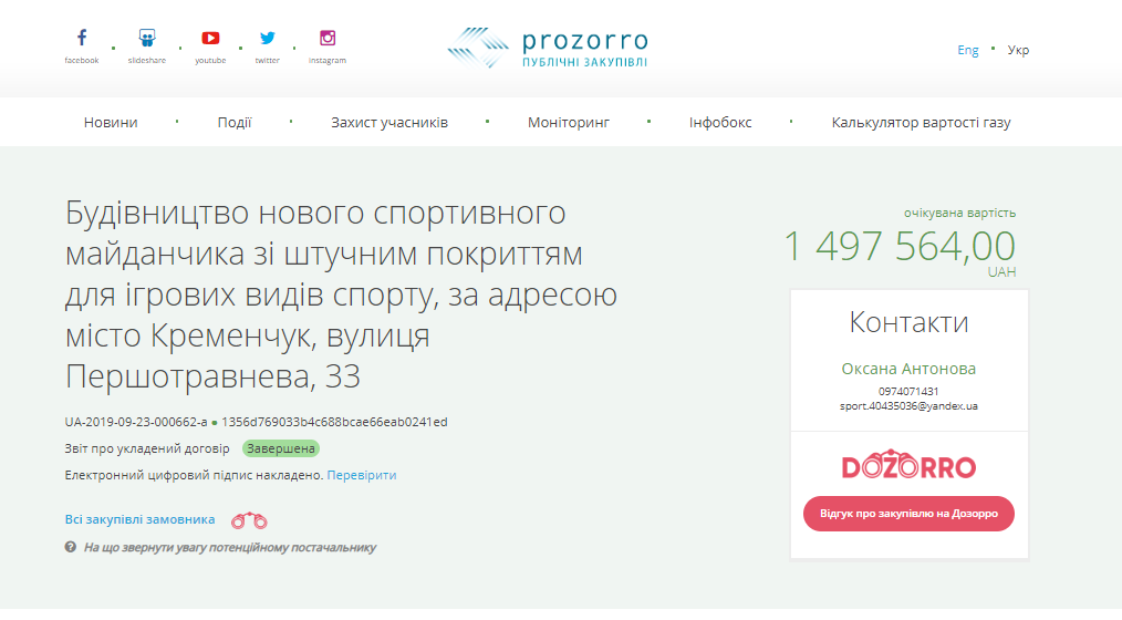 «Спорт для всіх» уклав угоду з ФОП «Білоус Тамара Миколаївна» для будівництва обох майданчиків. Роботи мають завершити до 31 грудня 2020 року.