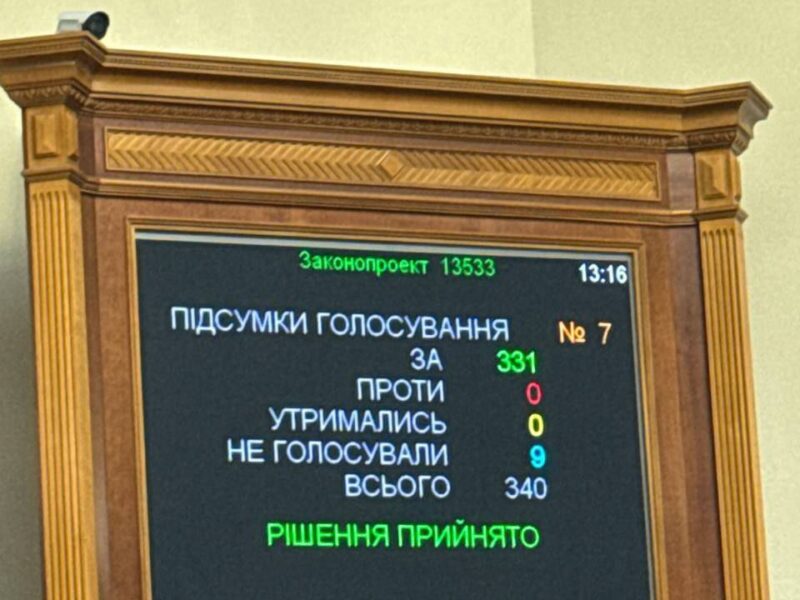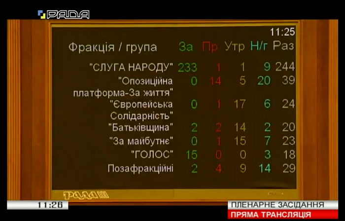 «За» данный законопроект проголосовали 252 народных депутата, «против» – 23, воздержались – 61, не голосовали – 61.