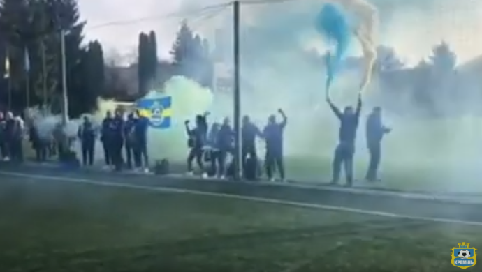 Неймовірну атмосферу на стадіоні зробили батьки юних футболістів «Кременя». Вони не лише палко підтримували своїх синів, а й запалили жовто-блакитні фаєри.