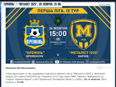 Цікавий момент, що харків'яни на офіційному сайті вже анонсували гру на стадіоні «Кремінь-Арена».