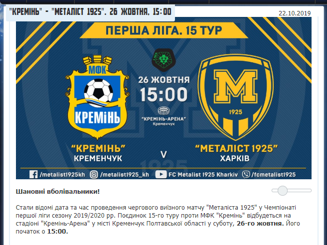 Цікавий момент, що харків’яни на офіційному сайті вже анонсували гру на стадіоні «Кремінь-Арена».