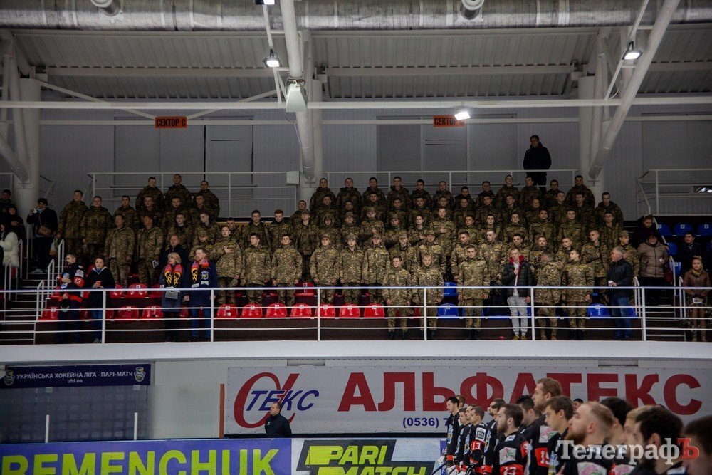 80 військових, серед яких були 57 курсантів Кременчуцького ліцею з посилення військово-фізичною підготовкою. Командир роти Сергій Марченко пресслужбі клубу ХК «Кременчук» зазначив, що вболівали за «Кременчук» завзято.