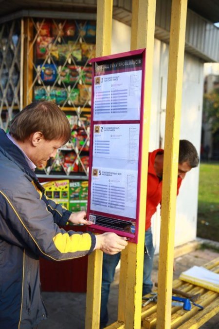 Як можна помітити зі світлин, нові таблички з розкладом руху мають той самий колір RAL 4006, як і тролейбуси Кременчука.