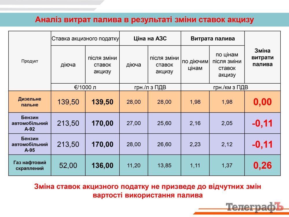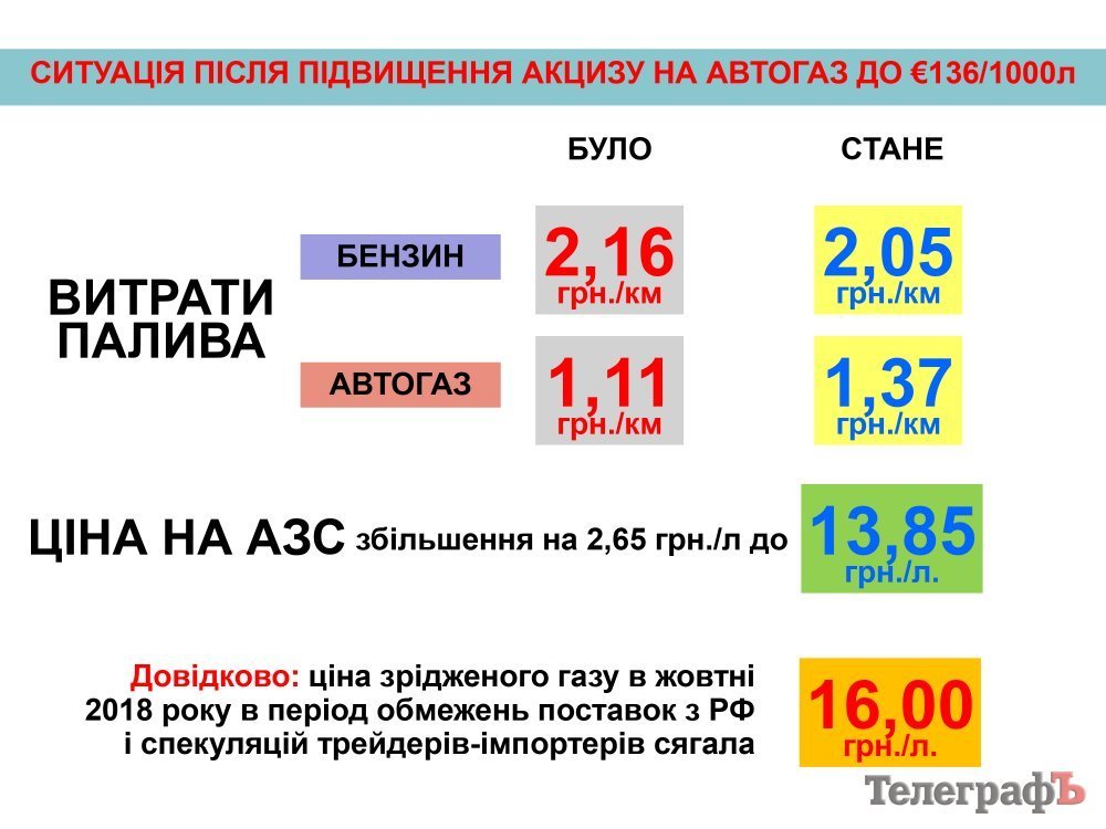 Якщо парламент погодиться на пропозиції «Укртатнафти», роздрібна ціна на автогаз на заправках підвищиться на 2,65 грн (із 11,2 грн до 13.85 грн), прогнозують в «Укртатнафті». Натомість, за цим же прогнозом, ціна на бензин А-92 має впасти 2,16 грн, на А-95 – на 2,23 грн.