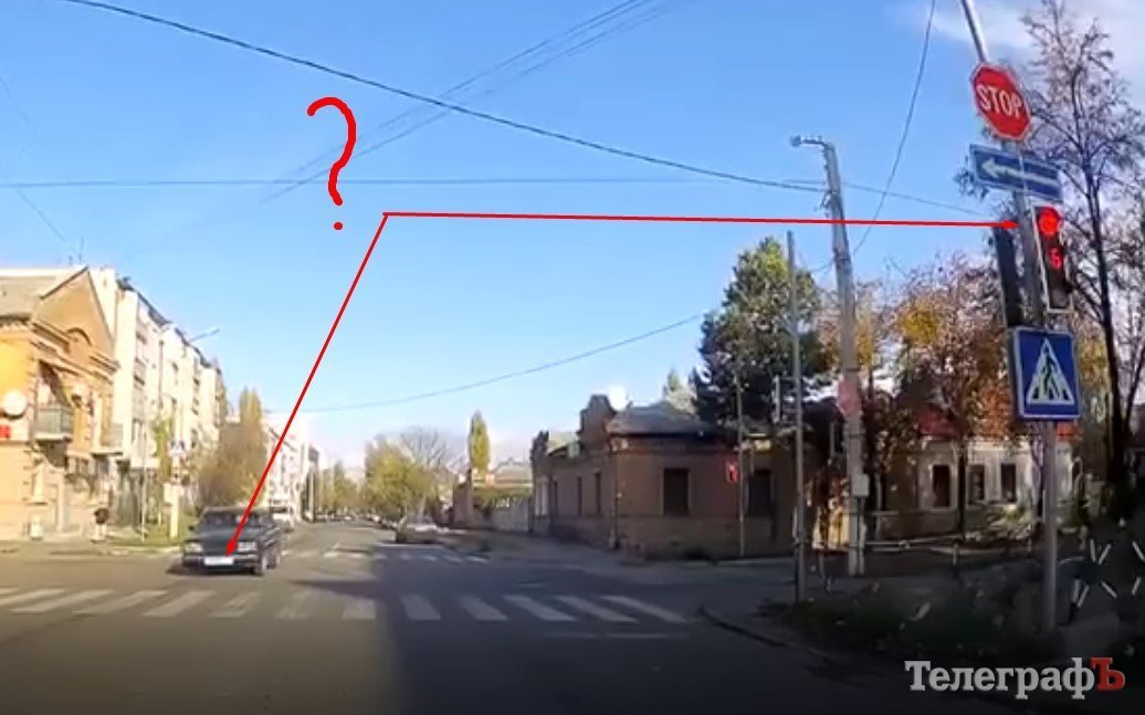 В видеорегистратор нашего постоянного читателя и автора рубрики «Дураки и дороги» попался служебный автомобиль полиции. Перекрёсток ул. Шевченко и Мазепы (который был назван «мистическим» из-за регулярных ДТП по причине игнорирования знаков или сигналов светофора) служебный автомобиль проезжает на красный сигнал светофора.