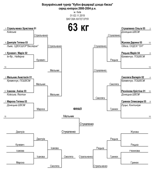 У ваговій категорії 63 кг змагалося троє кременчужанок: Марія Рицька, Валерія Смоляга й Анастасія Мельник.