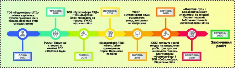 У підсумку ж після відмови «Будкомфорт ЛТД» виконувати роботи її справу продовжує пов’язана фірма - ТОВ «Фортеця-Буд», куди, до речі, «перебралося» принаймні двійко працівників.