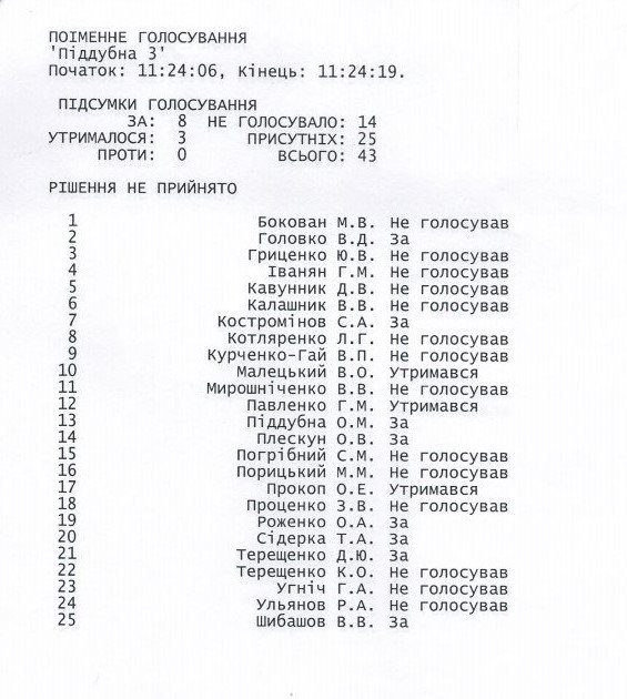 Вот результаты поименного голосования: