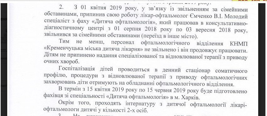 После провала на сессии Пиддубная направила в мэрию запрос. Она спрашивала, когда в детской больнице появится детский офтальмолог? Ей пришел ответ, подписанный профильным вице-мэром Усановой.