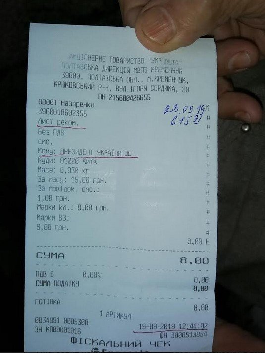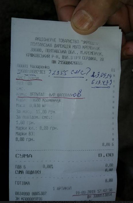 Еристовцы также предоставили редакции чеки, подтверждающие факт отправки писем адресатам.