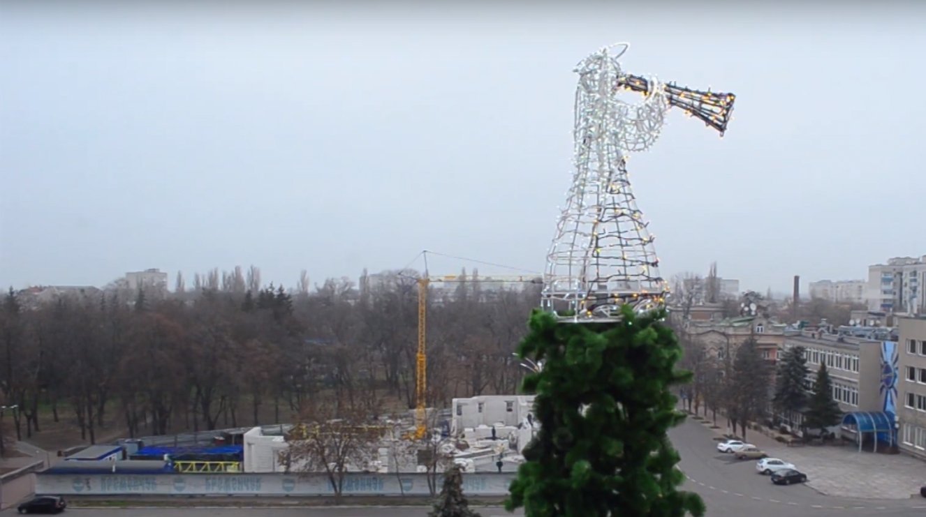 Вчора, 20 листопада, на верхівку головної новорічної ялинки Кременчука комунальники встановили світлодіодну фігурку-янголятко.