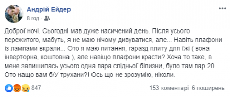 Один з полонених моряків, які повернулися додому, Андрій Ейдер на своїй сторінці поділився враженнями від повернення кораблів. Моряк зазначив, що крім плафонів та плити вкрали спідню білизну.