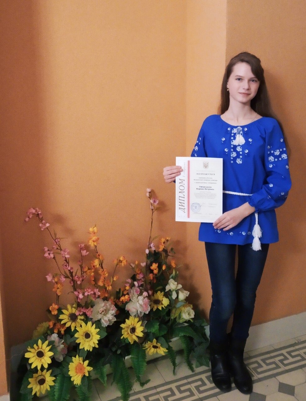 Також стипендіаткою Президента України цього року стала переможниця Всеукраїнської олімпіади з української мови та літератури у 2019 році, лауреатка стипендії імені Героя Небесної Сотні – Героя України Ігоря Сердюка, учениця 11 класу ліцею «Політ» Карина Ожерельєва.