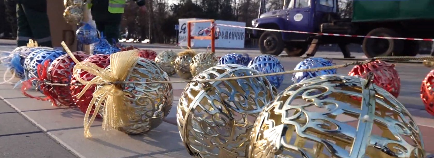 У Кременчуці комунальники вже зібрали головну ялинку міста на площі Перемоги, а тепер приступили до її прикрашання. Як повідомила пресслужба мерії, зелену красуню оздоблять різнокольоровими кульками в кількості 960 штук та розвісять на ній майже 1 кілометр гірлянд.