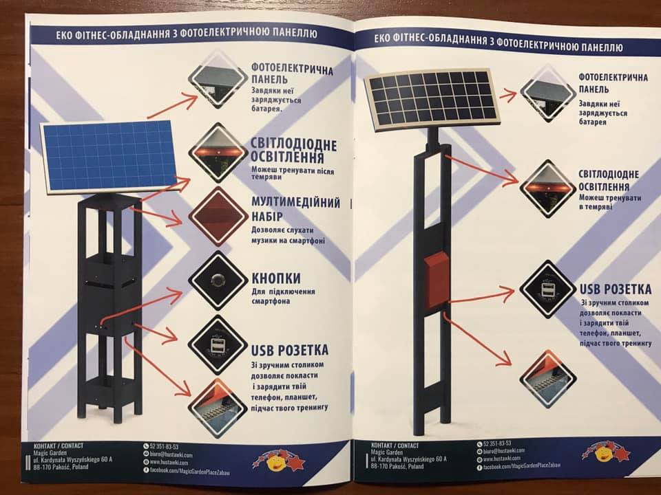 Особливо кременчужан зацікавило обладнання для майданчиків з вигулу та тренування собак DOGGY PARK, а також обладнання для спорту й відпочинку з сонячними панелями, які дають змогу заряджати телефони та освітлювати простір навколо себе.