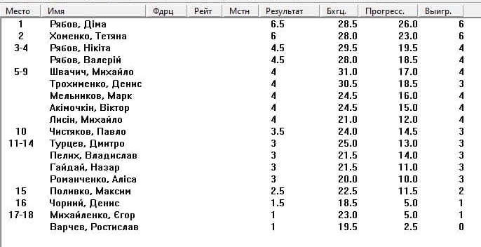 Серед 3 розрядів: 1 місце Лисін Михайло, 2 місце - Пелих Владислав, а 3 місце у Гайдая Назара.