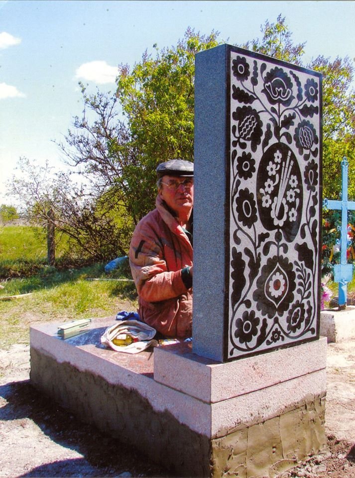 Анатолій Дяченко виконав на мармуровій плиті стилізований полтавський візерунок, а скульптор Володимир Максименко відлив барельєф із портретом художника.