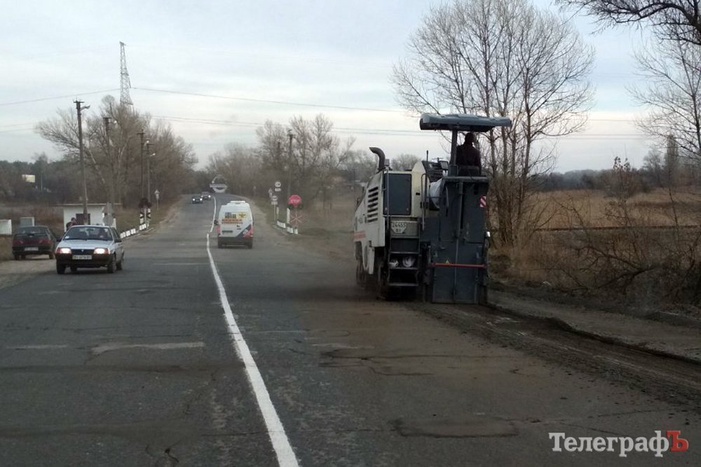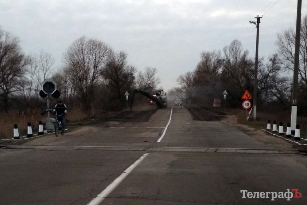 2 декабря, на следующий день после дождей и перед тем, как начался снегопад, дорожники успели начать ремонт на дороге Кременчуг – Горишние Плавни в районе железнодорожного переезда перед Низами.