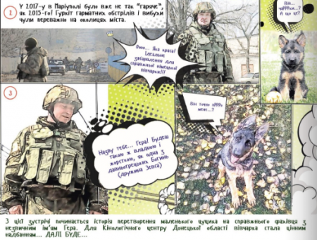 Полтавська поліція презентує комікс про службового собаку - вівчарку Геру, яка допомагала шукати вибухівку на Донбасі. Разом з напарником Назаром Гера відшукала чимало схованок зі всяким таким... на Донбасі!