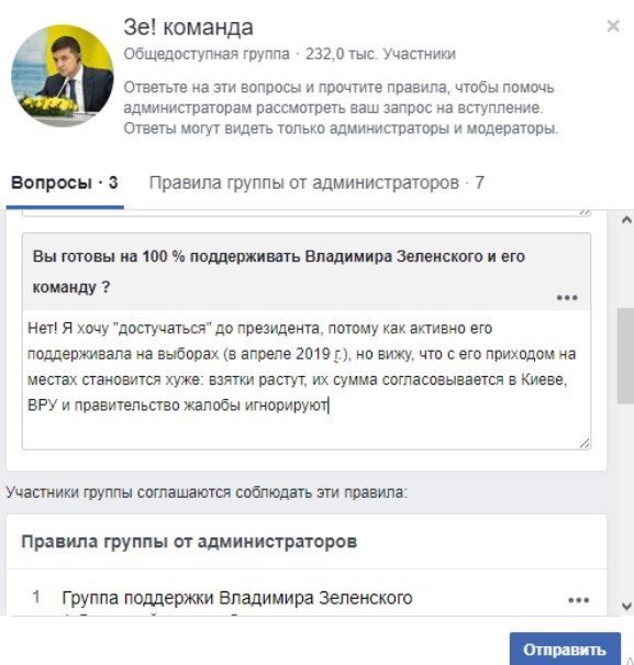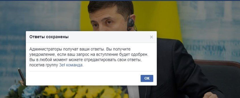 Кременчужанка попыталась зарегистрироваться в общедоступной группу Зе!команды в Фейсбук – и убедилась, что сделать это непросто и общедоступность группы явно преувеличена.