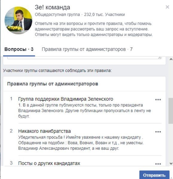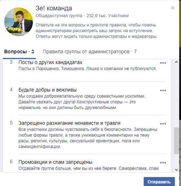 А здесь четко указано, что размещать в группе «Зе!команды» посты о Порошенко, Тимошенко и Ляшко нельзя: