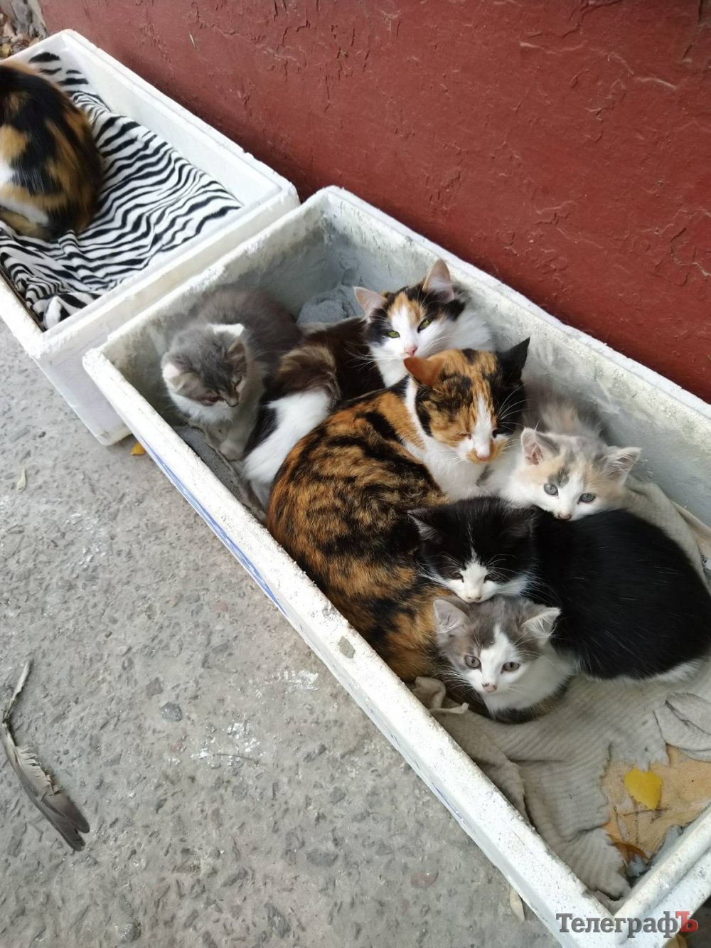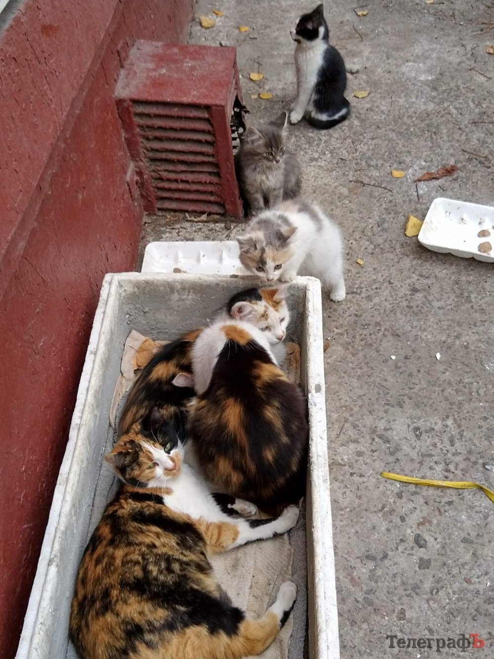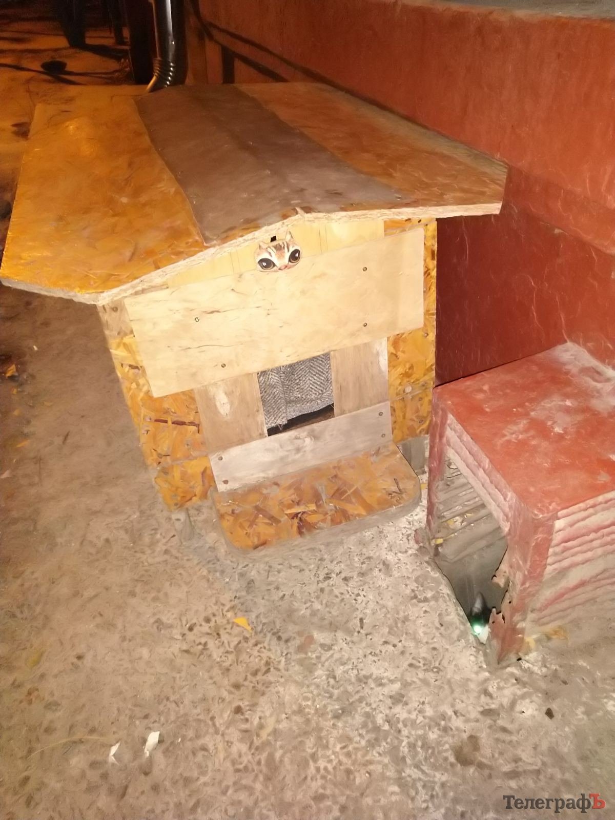 І замислилися. Волонтер Олена зауважила: якби коробки не було, кошенята сиділи б у підвалі і Машці не довелося б жертвувати своїм котячим життям – вона просто втекла б. Олена порадила прибрати коробку. Але сусіди Ігор і Віталій вирішили по-своєму: склалися грошима, купили сітку-рабитцю і щільну матову плівку. Віталій, який на своїй дачі підгодовує кількох бездомних котів, привіз із дачі справжню будку, і вони вдвох із Ігорем обтягли її сіткою і плівкою, закріпили залізними стяжками, зробивши ніби криту веранду. Витратили десь метрів п’ять плівки і 2,5 метра сітки. Вийшла дуже гарна і тепла така собі котяча хатка. Тепер її мешканцям не страшні ні погодні катаклізми, ні бродячі собаки. Жалко лише Машку… не дожила. Натомість дві старші її доньки, Ліса і Соня, тепер опікуються молодшим поколінням замість мами.